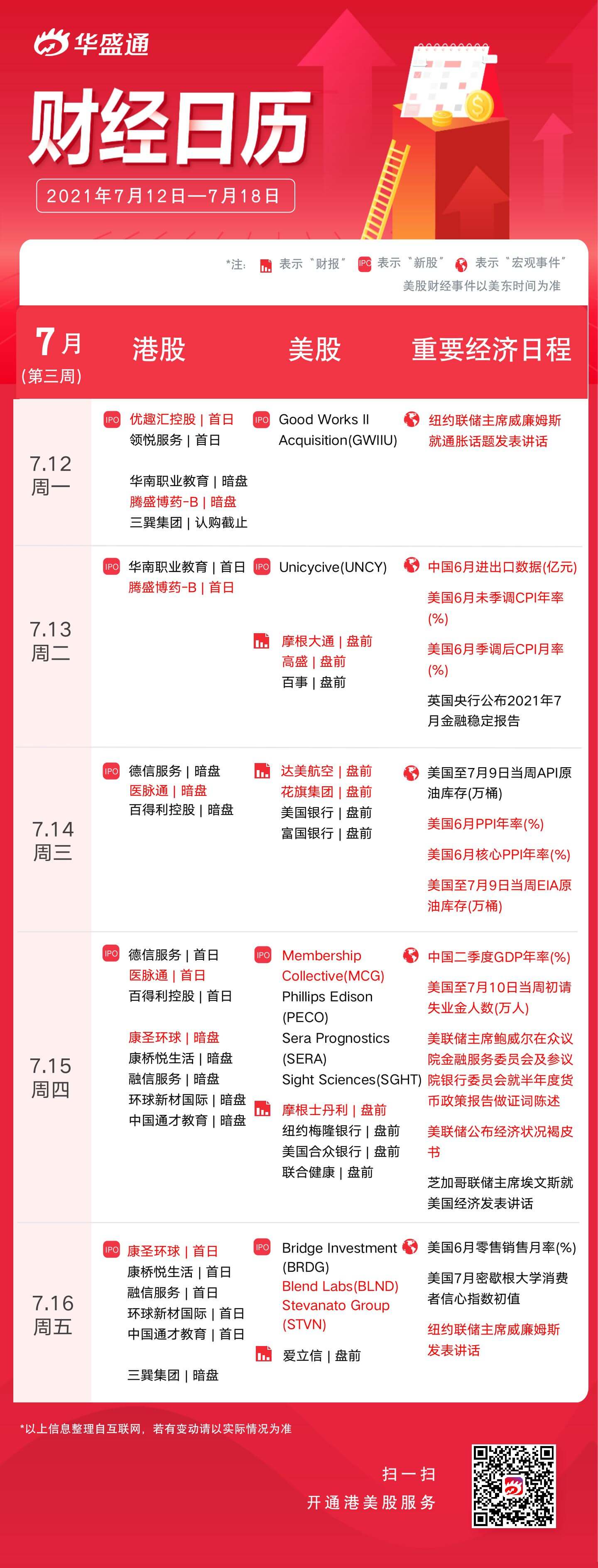 以上即为下周港美股及宏观资讯一览,祝新的一周投资顺利~