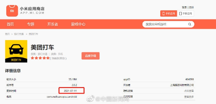 据中新网,在小米应用商店等应用分发市场发现,美团打车独立APP重新上架,更新日期为2021年7月11日。不过美团打车APP下载仅限于安卓端,官网还未更新,苹果App Store也未上架。据了解,美团打车于2017年2月正式上线,但在2019年悄悄下架,其打车服务集成在美团APP上。