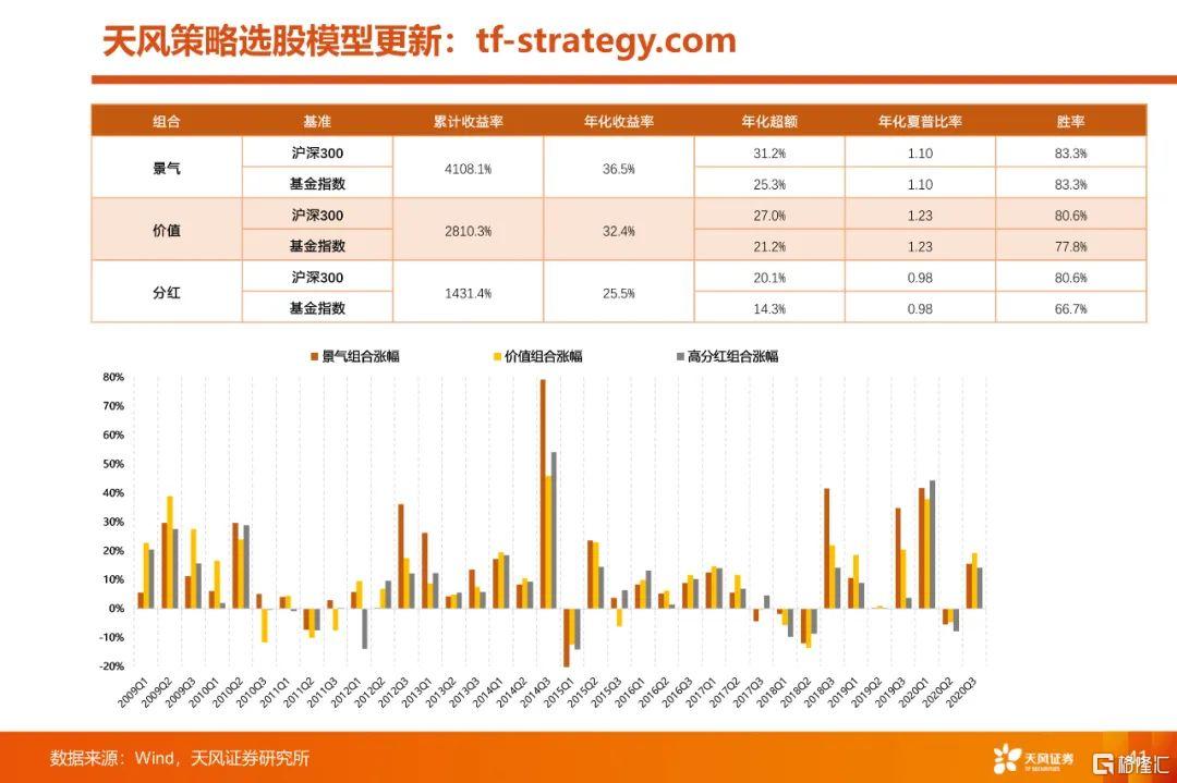 3、新一轮股市周期的开启,就是在高景气方向中,不断挖掘未来潜在的核心资产。建议关注股权激励的行权条件作为筛选依据,同时也可以关注我们的【景气成长模型】,详见天风策略的网站:tf-strategy.com。