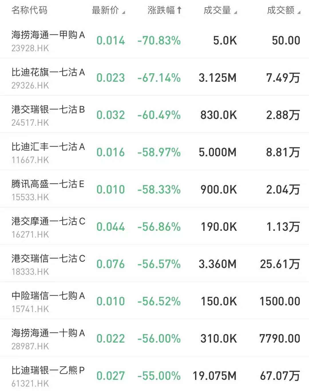 其中,窝轮总成交114.49亿港元,牛熊证总成交68.66亿港元。