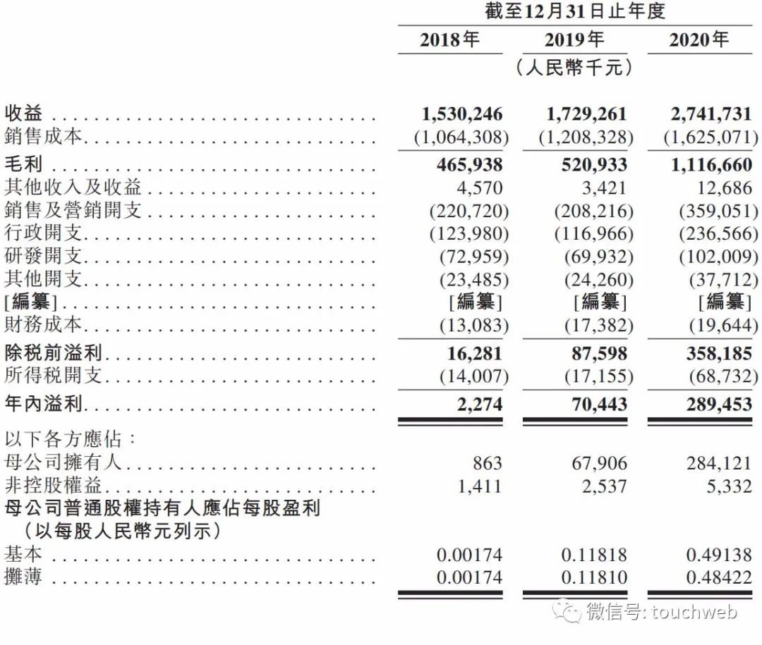 招股书显示,艾迪康2018年、2019年、2020年营收分别为15.3亿元、17.29亿元、27.42亿元;毛利分别为4.66亿元、5.2亿元、11.17亿元。