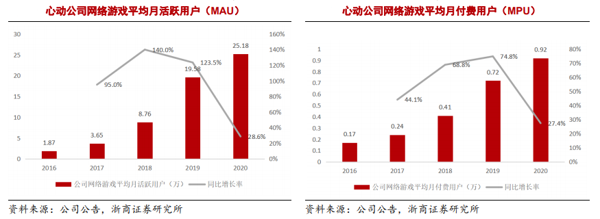 浙商证券则看好心动公司的模式,认为TapTap在To B端和To C端都有着独特的价值。而TapTap作为目前全球最大的手游社区平台,其分发能力和社区活跃度都处于明显的领先地位。2016年-2020年,心动的网络游戏活跃用户和月付费用户都实现了高增长。随着哔哩哔哩入股心动公司,未来价值将更加凸显。