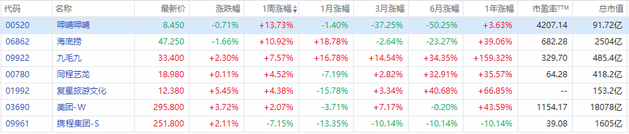 此外,本地生活龙头美团(03690)、今年疯狂“打折”但近期出现明显反弹迹象的餐饮龙头海底捞(06862)等,都有望受益于暑期潜在出行和消费,投资者可多加关注。
