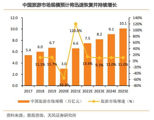 作为中国乃至全球最大的OTA平台,携程集团获得天风证券首推。随着疫情后良好的恢复态势,火爆的清明节、劳动节和暑期档,都可能在携程Q2财报中得到体现。根据易观咨询数据显示,中国旅游市场预计将从疫情中迅速恢复,至2025年市场规模有望达到10万亿元。