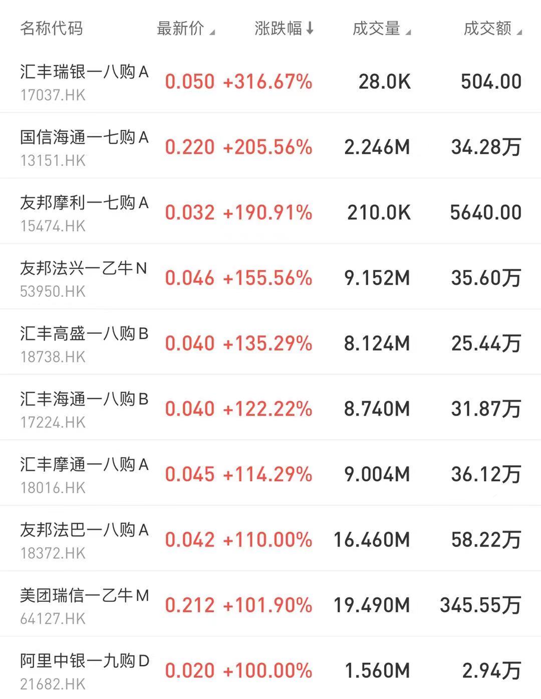 涨幅居前的包括:汇丰瑞银—八购A暴涨316.67%,占据排行榜第一;国信海通—七购A涨205.56%;友邦摩利—七购A涨190.91%。