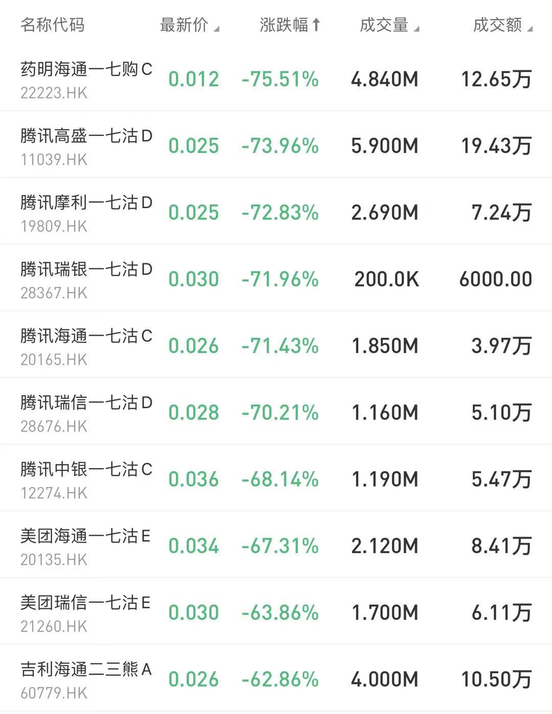今日所有窝轮牛熊证合计成交178.05亿港元,占大市成交11.43%。