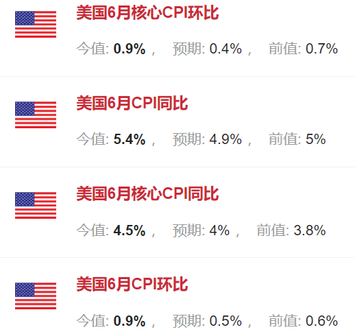 机构评美国6月CPI数据:美国劳工部数据显示,6月季调后CPI月率上涨0.9%,未季调CPI年率录得5.4%,其中二手车占CPI增幅的三分之一。美国6月核心CPI同比 4.5%,预期 4.0%,前值 3.8%。CPI数据涨幅超过预期,因与经济重启先关的大宗商品和劳动力成本上涨继续加剧通胀压力。