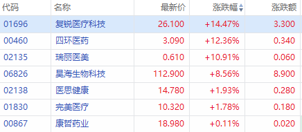华盛资讯7月14日消息,今日医美概念股迎来大面积上涨,其中复锐医疗、四环医药盘中大涨逾12%,值得注意的是,复锐医疗今日再次刷新历史新高。瑞丽医美涨超10%,昊海生物科技涨超8%,医思健康、完美医疗涨超1%。