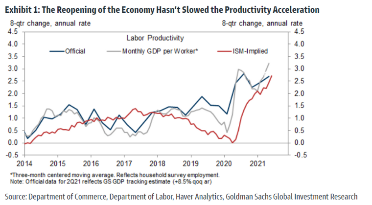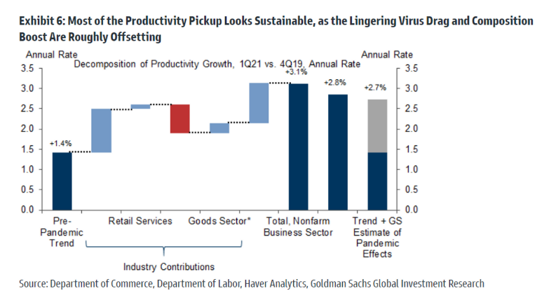 答案可能比你想象的要长。根据高盛的一份新报告,新冠疫情的乌云下,更强的生产力增长是透进来的那一丝阳光。