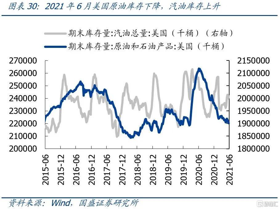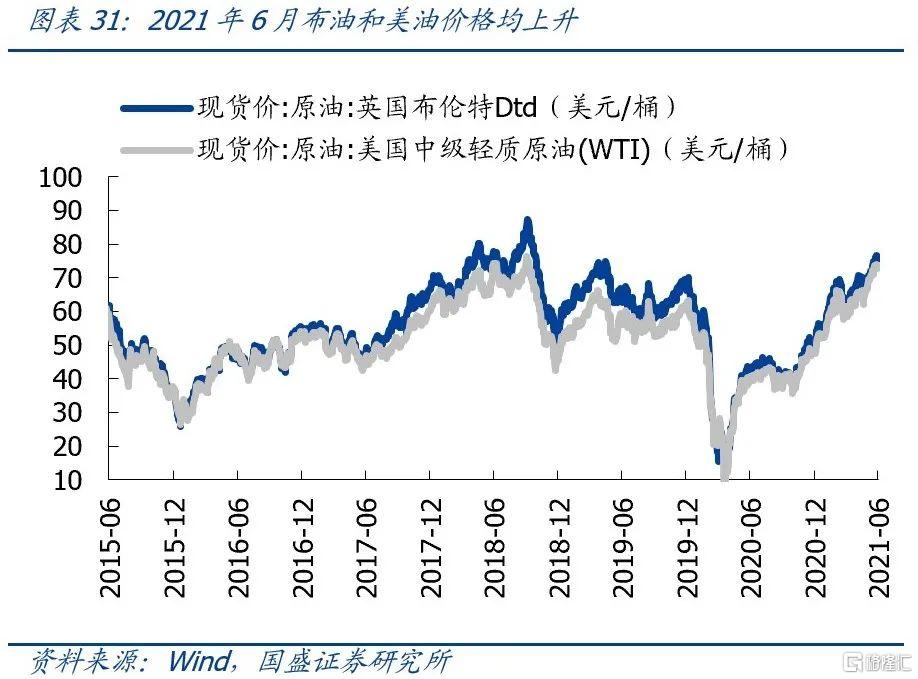下半年油价大概率继续上行。EIA 库存仍在持续下降,叠加市场预期欧佩克仅小幅增产,原油供给仍显紧张;但全球经济共振复苏、市场的乐观预期将继续支撑原油需求,特别是随着欧美疫苗接种快速推进,航空、运输等下游需求的改善有望继续推动油价上行。