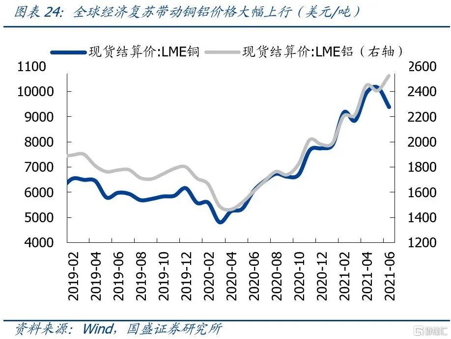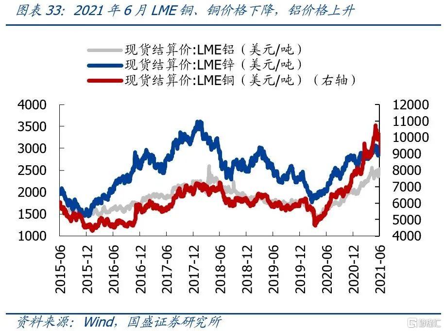 工业金属的供需错配或将在更长的时间继续维持。铜供给因铜矿生产国受到疫情冲击而受限,近期虽然边际缓解但仍将维持紧平衡,同时三大交易所的铜现货库存仍处近年低位;需求来看,海外经济持续复苏、拜登基建计划出台或将继续带动铜表观库存去化,铜在新能源应用方面的需求也在大幅增长,铜的供需错配或维持更长的时间。海外经济持续复苏带动出口规模,中国房地产仍处竣工高景气周期,铝原料下游需求维持高位,电解铝价格率先降低为下游带来低价补库机会,表观库存去化;而从供给角度看,多地区限电现象将加剧铝供应扰动。