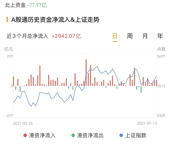 北上资金今日净流出77.97亿元,昨日净流入57.16亿元。
