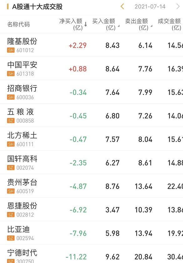 北上资金今日净买入隆基股份2.29亿元,为今日买入之最。