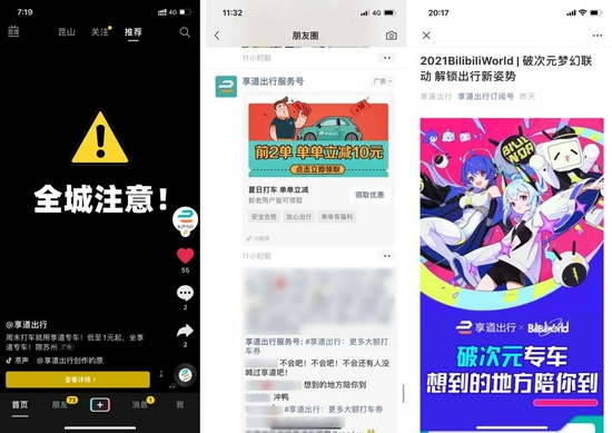 出行一客从享道出行了解到,在近期夏日网约车优惠大战中,享道出行通过微信朋友圈广告、抖音、线下投放等多渠道推广优惠活动来回馈消费者,通过大额优惠券和钱包充值优惠的方式吸引新用户,提升老用户粘度。成立于2018年的享道出行隶属于上汽集团,主要覆盖长三角地区。