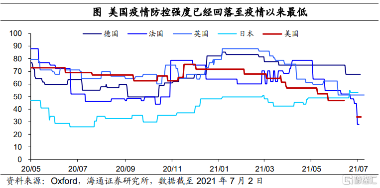 我们认为,当前通胀已经具备了“Taper”的条件,无论是核心CPI同比还是核心PCE同比均远远超过了美联储2%的通胀目标水平,而且截止7月13日,美国5年期通胀预期仍在2.6%的高位,10年期通胀预期也在2.4%的高位,均已经达到了2013年“Taper”之前的位置。如果美国经济就业延续复苏,预计美联储将释放明确的“Taper”信号。