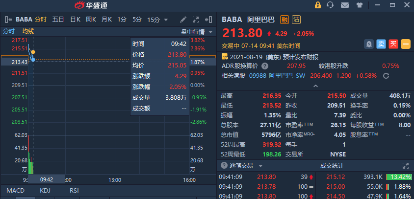 华盛资讯7月14日讯,美股早盘,中概股全面高开。截至发稿,阿里巴巴(BABA)涨逾2%。