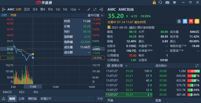 华盛资讯7月14日消息,美股早盘,WSB热门概念板块持续走低。AMC院线(AMC)跌逾10%,Roblox(RBLX)跌2.1%;Clover Health(CLOV)、Express(EXPR)均跌近1%。