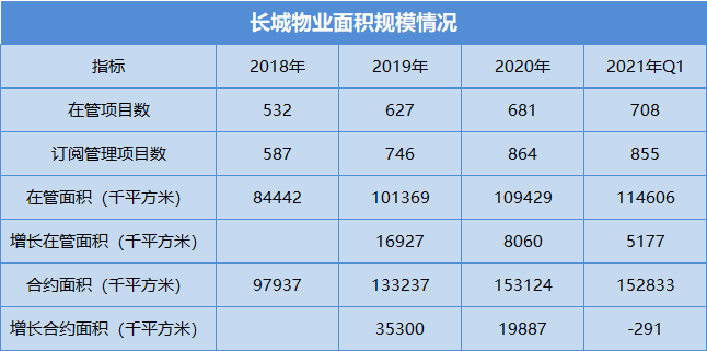招股书数据显示,2018年至招股书最新披露期,长城物业集团仅通过收购获取了1个订约项目,面积为35.4万平方米;获取了2个在管项目,对应面积为35.4万平方米。