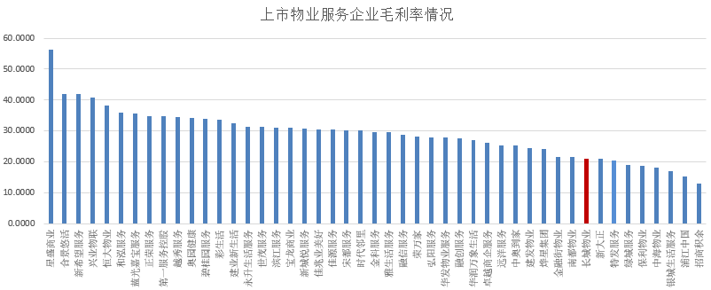 以2020年物业服务企业毛利率数据来看,长城物业集团的毛利率位于行业尾部。