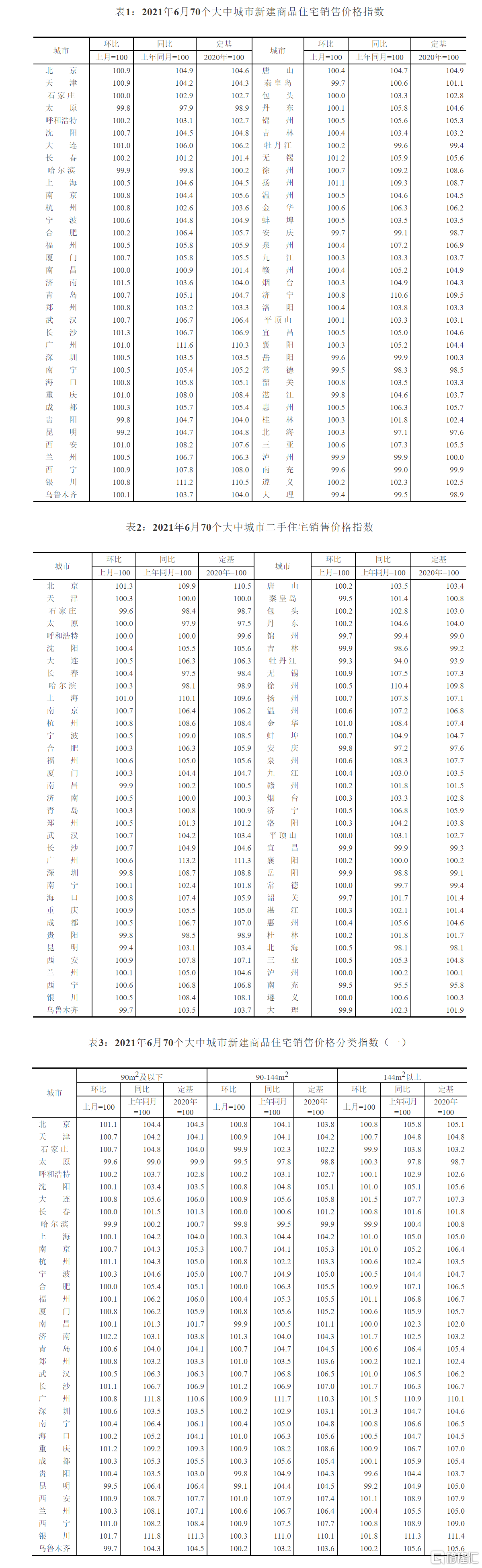 2021年6月份,70个大中城市商品住宅销售价格涨幅整体呈现稳中有落的态势。