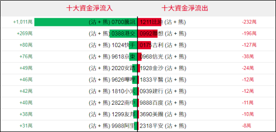 淡仓(认沽证及熊证)方面,周三腾讯等相关淡仓单日录得约1011万港元资金净流入部署,港交、快手、京东、安踏等相关淡仓单日亦录得部分资金净流入;相反,个股相关淡仓净流出方面则资金规模普遍偏小。