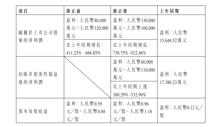 华盛资讯7月15日消息,赣锋锂业昨日晚间披露业绩预告修正公告,预计上半年净利润13亿元-16亿元,同比增长730.75%-922.46%。此前预计盈利8亿元-12亿元。