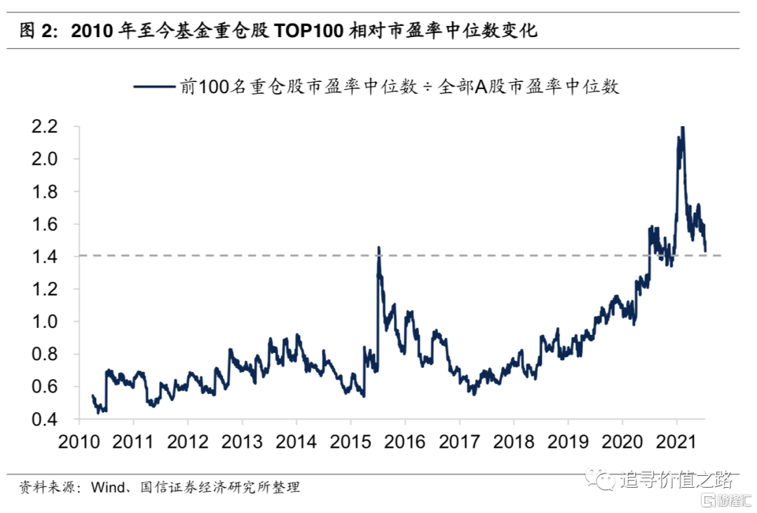 总的来看,我们认为基金重仓股相对估值的回落已基本告一段落。除非外部环境发生巨大变化,否则估值分化可能就是一个常态,未来估值分化中枢会比以前更高。在没有出现极端估值分化的情况下,单纯由估值高点或低点引起的只可能是交易性机会,对应短暂的修复或调整,而很难有趋势性机会。在新的发展格局及产业趋势下,经营良好、前景广阔的优质公司可以获得一定的估值溢价,不应过度依赖于估值“均值回归”的逻辑,而应当把握趋势性的大机会。