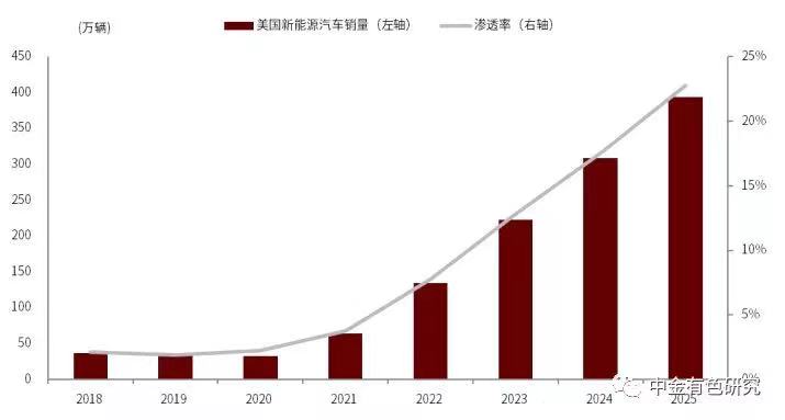 表2:2018-2025年美国新能源汽车销量预测
