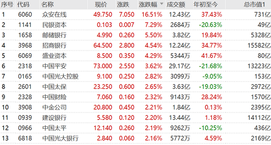 大金融集体爆发,以港股方面,邮储银行一度涨超8%,目前涨5.5%;招行涨近5%,中国平安涨近4%,中国太保、中国财险等集体走高,建行涨2.2%。