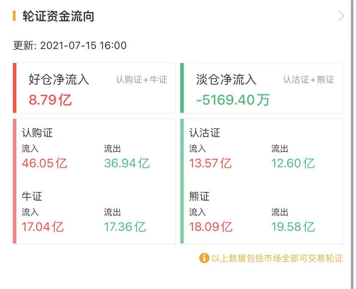 其中,窝轮总成交111.46亿港元,牛熊证总成交76.33亿港元。