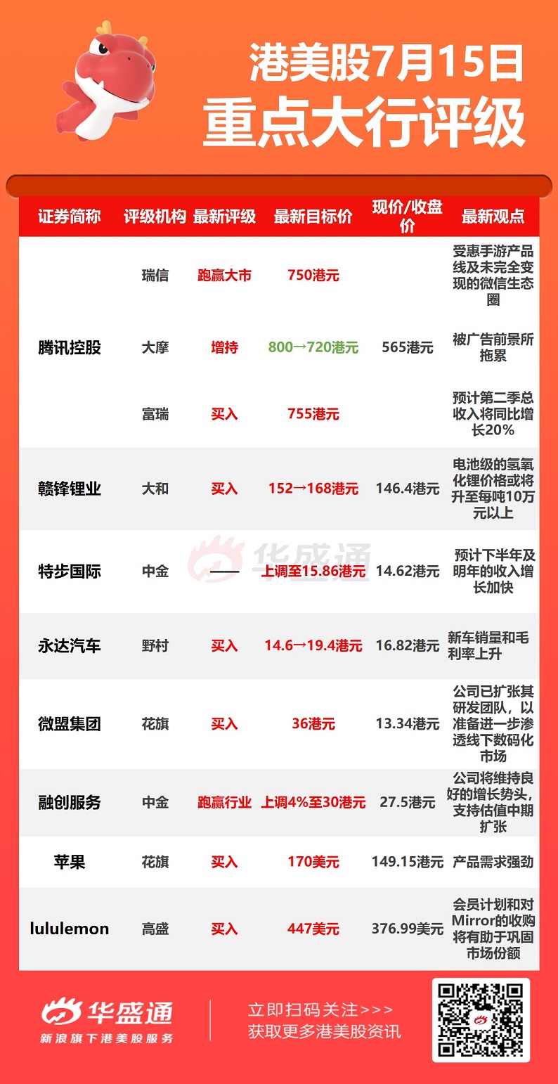 高盛将lululemon(LULU)加入确信名单中,该行分析师Brooke Roach首次覆盖lululemon并予“买入”评级,目标价447美元。