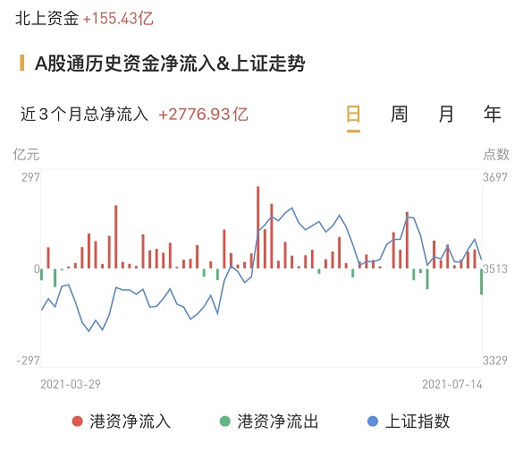 北上资金今日净流入155.43亿元,昨日净流出77.97亿元。