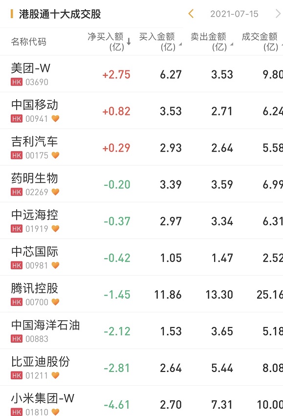 个股方面,今日南下资金净买入美团2.75亿港元,为今日买入之最。此外,南下资金净买入中国移动0.82亿港元。