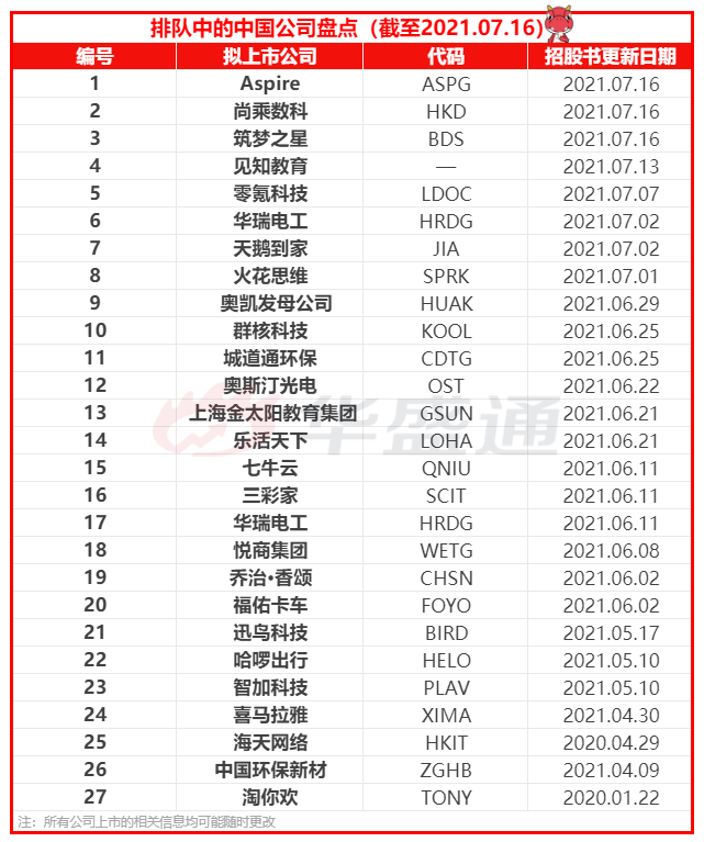 除了以上预计本周上市的18只新股外,还有逾20家公司正排队等待上市。其中,上周新增一家向SEC递表的公司,见知教育。据了解,成立于2011年的见知教育,前身为森途教育,是一家在线高等教育机构职业培训服务提供商,曾四次向港交所递交招股书,但均以失败告终。