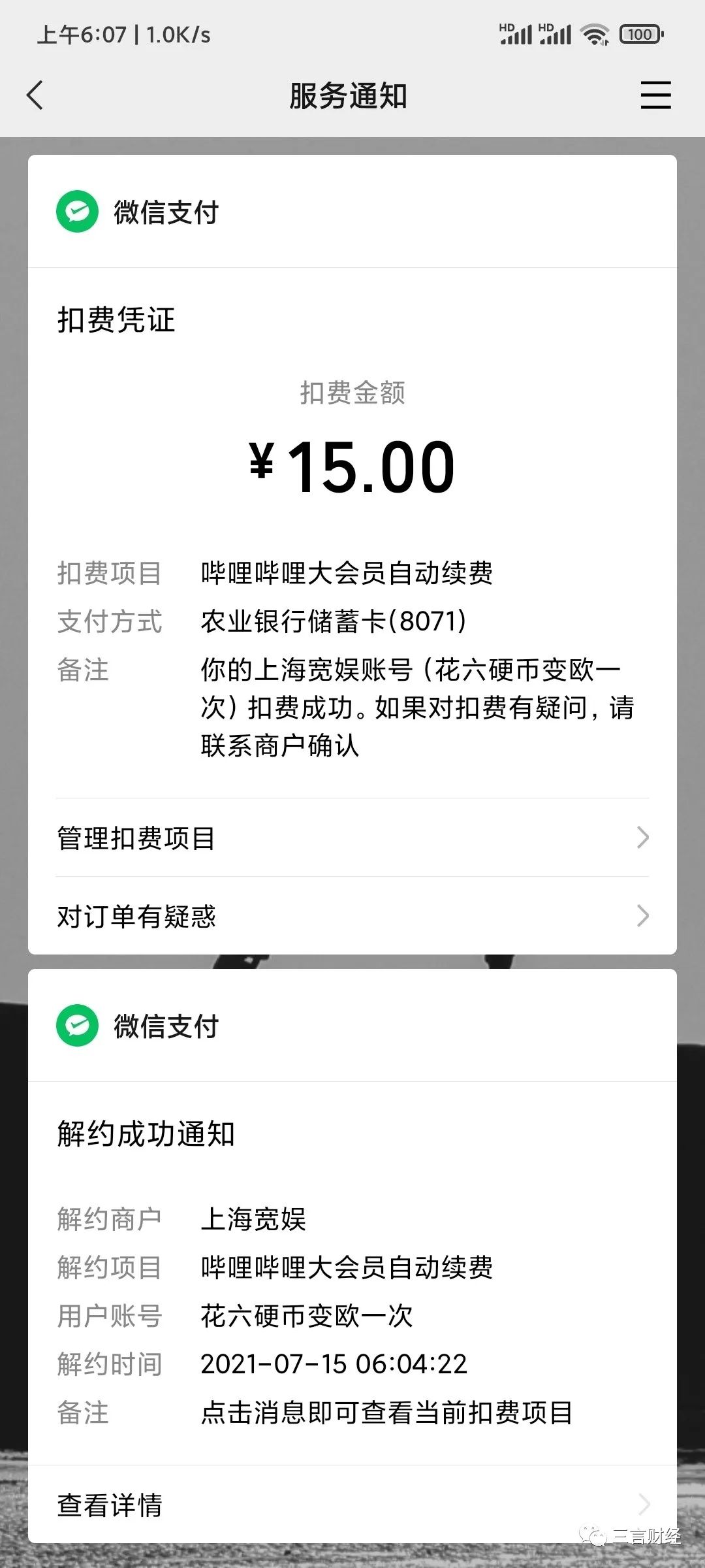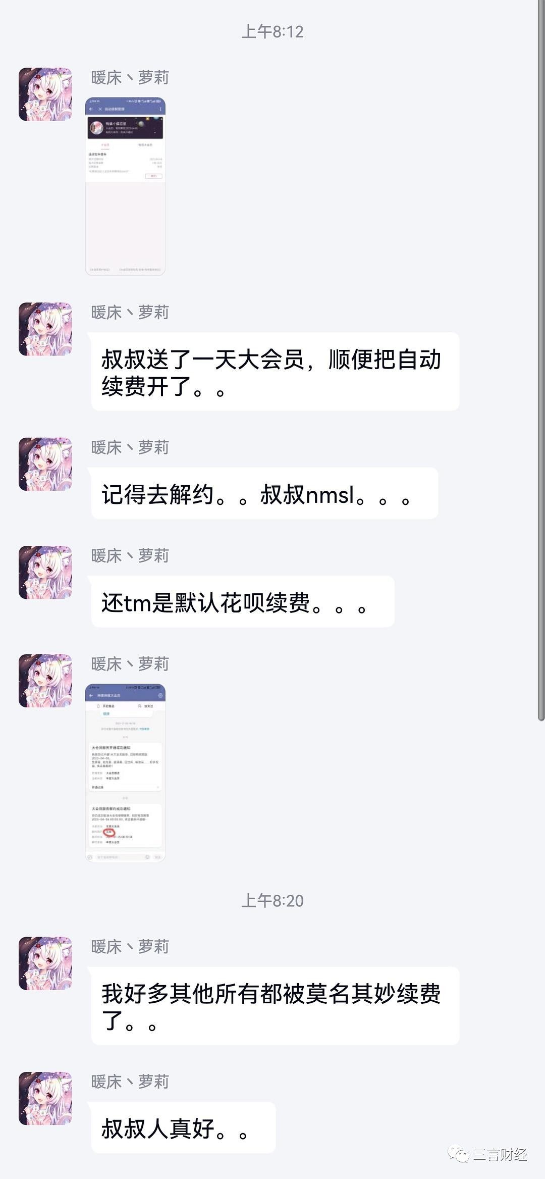 三言财经测试发现,确如上述自媒体所言,若用户曾经开通过连续订阅服务,那么领取了本次一天大会员后可能会触发自动续费功能;如果曾经从未开通过连续付费服务的用户,则不存在该问题。若用户误触发了自动续费,那么需要及时关闭;如果已经被扣款,则需要联系客服全额退款。