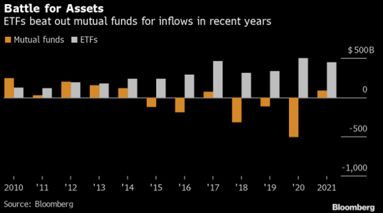 长期以来,投资者一直在转向更便宜、更易于交易和更节税的工具。现在,即使是最有名的基金经理也在推出ETF,以免与市场趋势脱节,而一些资金经理(例如 Vanguard Group)正帮助客户转换到ETF。