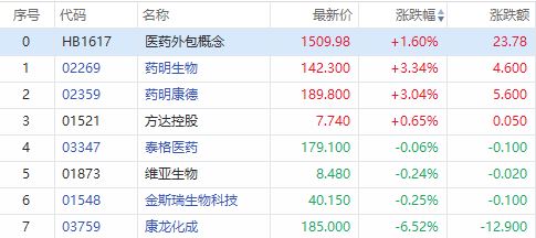 药明康德上涨3.04%;康龙化成下跌6.52%。此前两股均发布业绩预告,药明康德预计上半年净利润同比增长53%-55%,康龙化成预计上半年纯利同比增4%-24%。