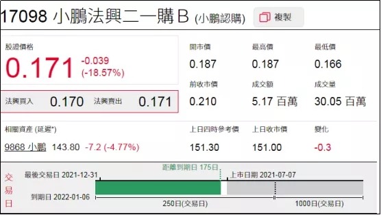 2、看错方向:小鹏法兴二一购(17098.HK),周四下跌18.57%。
