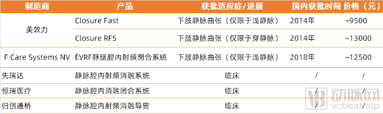 首先来看静脉曲张领域的射频消融市场。目前国内上市的射频消融产品均由进口生产。