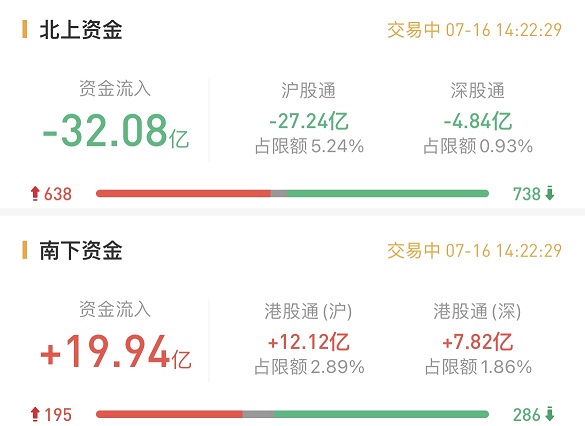华盛资讯7月16日消息,目前,南下资金净流入19.94亿港元,其中港股通(沪)净流入12.12亿港元,港股通(深)净流入7.82亿港元。