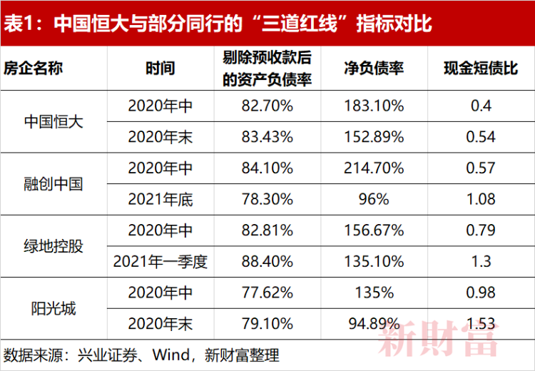 2020年8月,住建部、中国人民银行召集包括中国恒大、碧桂园(02007.HK)、万科集团(000002/02202.HK)在内的12家房企参会,对这些试点房企的有息负债规模设置了“三道红线”——即剔除预收款后的资产负债率不得大于70%;净负债率不得大于100%;现金短债比不得小于1倍。