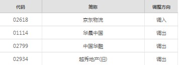 7月16日,上交所根据《上海证券交易所沪港通业务实施办法》的有关规定,沪港通下港股通股票名单发生调整:调入京东物流(02618);调出华晨中国(01114)、中国华融(02799)、越秀地产(旧)(02934),并自下一港股通交易日起生效。