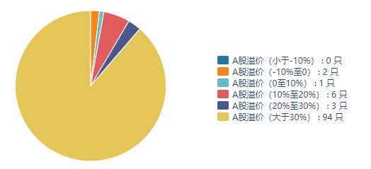 本周有94只A股溢价超过30%,3只溢价在20%至30%之间,6只在溢价10%至20%之间,1只溢价在0-10%之间。