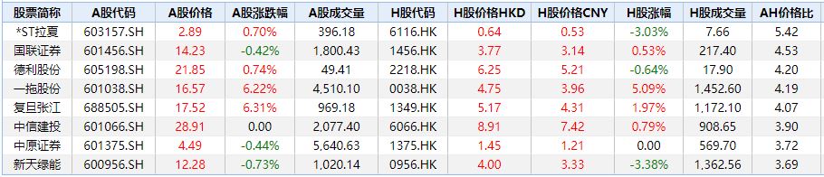 个股方面,*ST拉夏、国联证券、德利股份、一拖股份、复旦张江、中信建投、中原证券等个股位列沪港通溢价榜前列,投资者可关注相关个股估值回归机会。