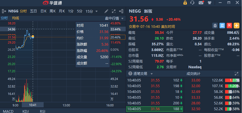 华盛资讯7月16日消息,WSB概念股走势分化,Newegg Commerce涨超20%,AMC院线涨超5%,游戏驿站涨超3%,Marin Software跌超7%,上为集团跌超5%。