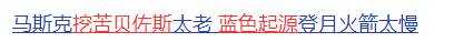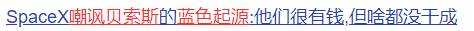 而马斯克与贝佐斯之间的竞争,也同样十分激烈:贝佐斯不断暗中搞事,而马斯克也不止一次嘲讽蓝色起源,表示蓝色起源除了有钱啥也不会啥也不是。