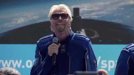 理查德·布兰森在搭乘维珍太空船团结号,降落在新墨西哥州美国太空港,并通过现场直播表示:“向我们维珍银河公司所有优秀的团队成员道贺,他们17年来的努力不懈,使我们在今天梦想成真。”