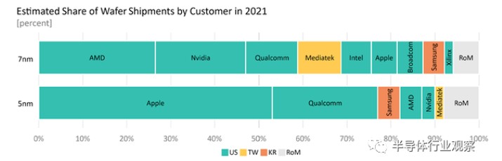 2021年全球7/5nm晶圆出货量客户占比预测(图源:SNV)