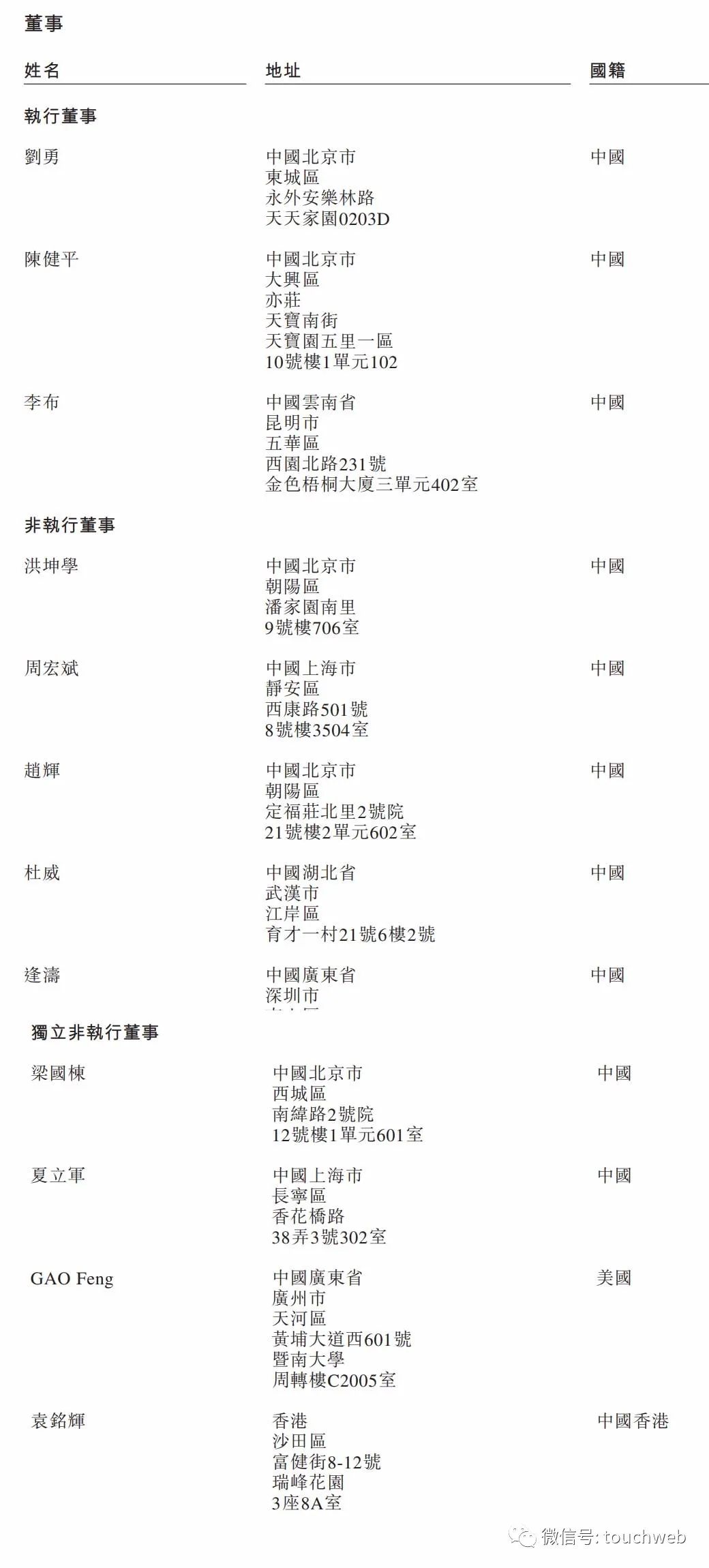 瑞科生物执行董事为刘勇、陈健平、李布;非执行董事为洪坤学、周宏斌、赵辉、杜威、逢涛;独立非执行董事为梁国栋、夏立军、GAO Feng、袁铭辉。