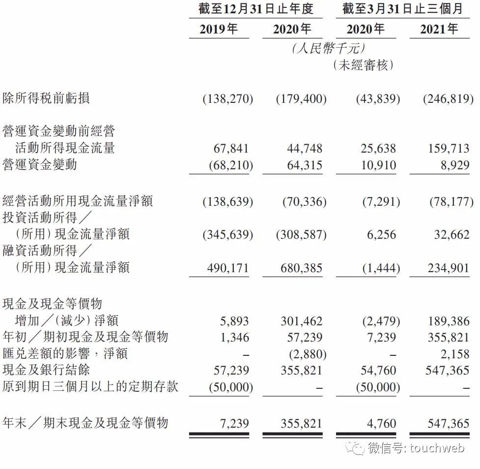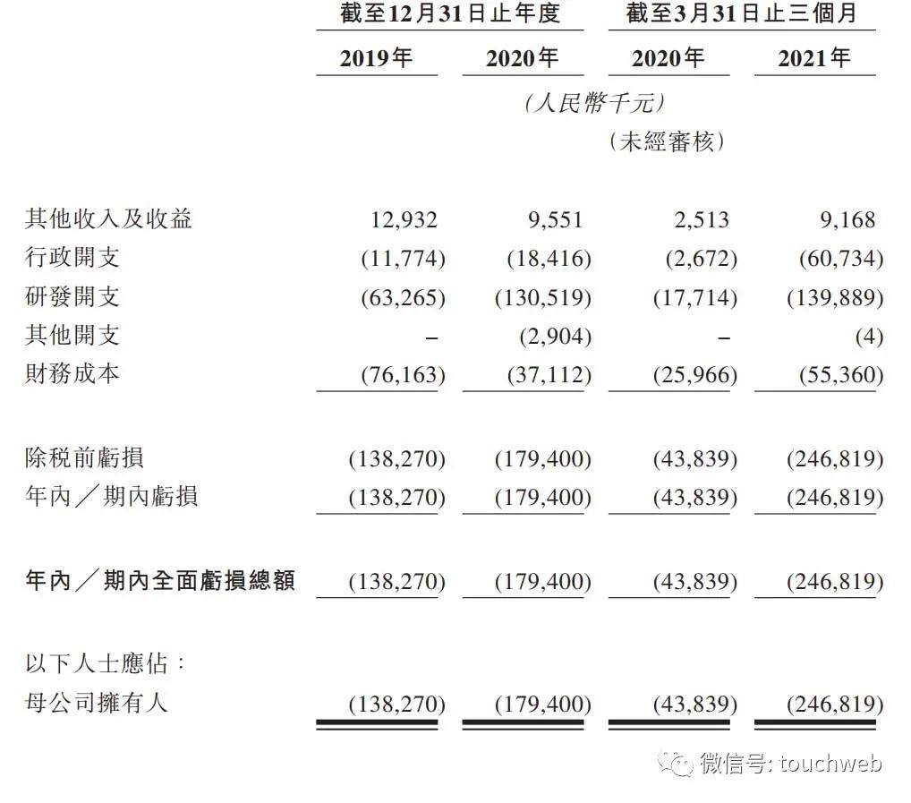 瑞科生物2019年、2020年期内亏损分别为1.38亿元、1.79亿元;瑞科生物2021年第一季度净亏损为2.46亿元,上年同期的净亏损为4384万元。